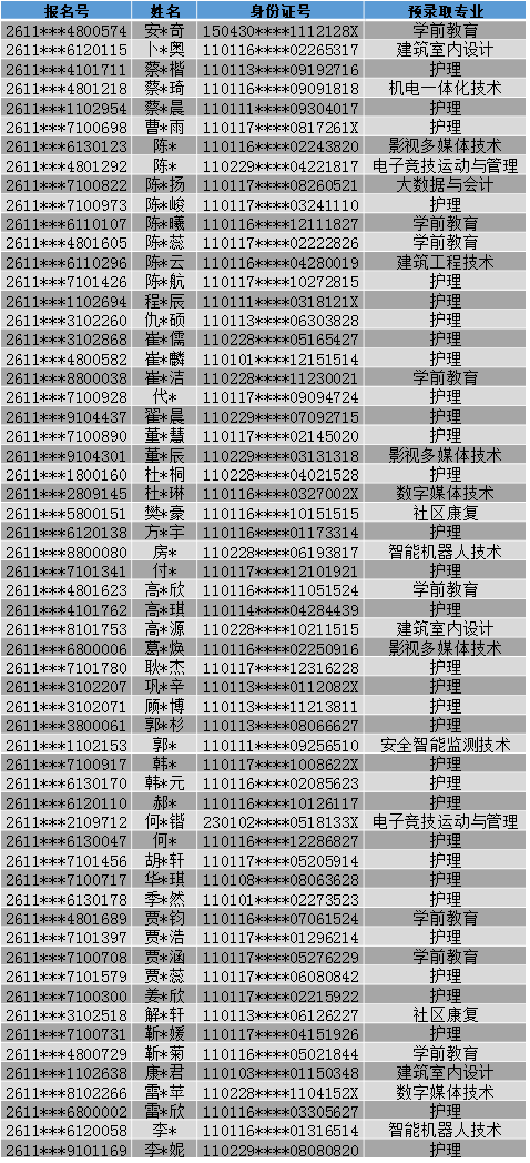 2026年高职自主招生首轮预录取名单