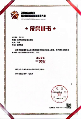 该次参赛是一次验证教学实践、设计应用效果的尝试,是检验教师日常教学成果的一种方法,也是展现学生创新思维能力和设计表现能力的机会,参赛不仅是收获荣誉的竞技活动,更是一次提升专业实力的重要契机。以竞赛的成绩衡量教学成果,是以赛促学、以赛促教、以赛促建的有效途径,以此为教学创新的驱动力,再接再厉,再创佳绩。培养更多的优秀的创新设计优秀人才,用设计语言讲好中国故事,为设计行业的高质量快速发展助力铸魂。